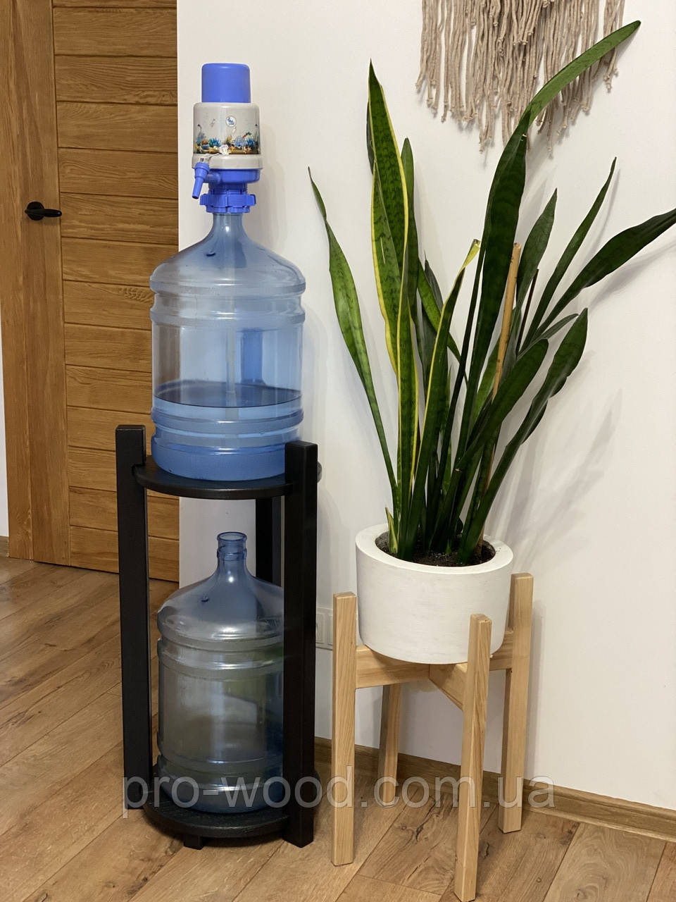 Дерев’яна підставка під бутильовану воду двомісна — практичне рішення для дому, офісу або кав’ярні. Виготовлена з масиву сосни, пофарбована у стильний чорний колір із захисним покриттям. Конструкція розрахована на 2 бутлі стандартного об’єму (до 19 л).